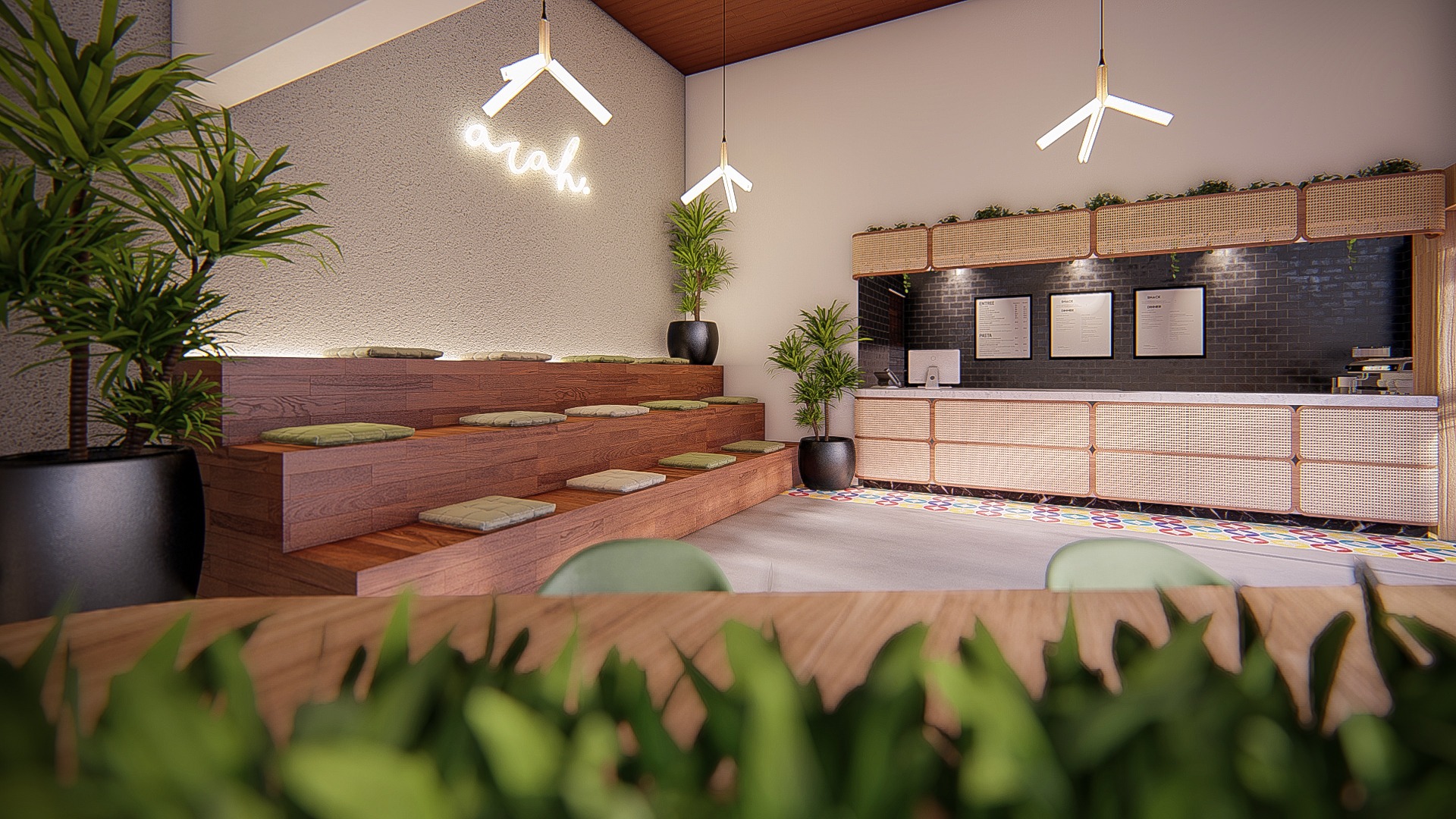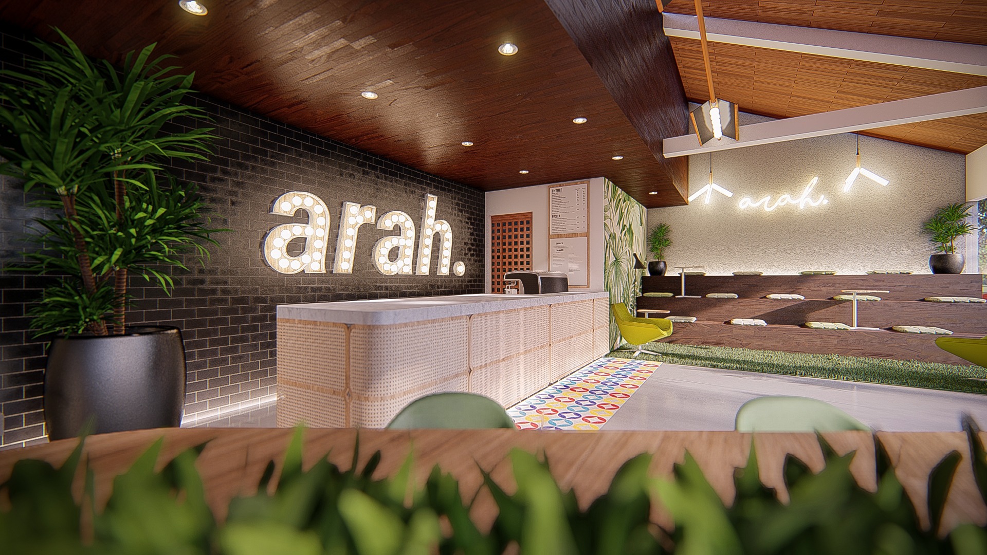 Renovasi interior ARH Coffee Shop berfokus pada pembaruan suasana agar lebih modern, nyaman, dan menarik bagi pengunjung. Konsep desain diarahkan pada tampilan hangat dengan kombinasi material kayu, pencahayaan ambient, serta penataan ulang layout seating untuk meningkatkan kenyamanan dan kapasitas. Renovasi ini memperkuat identitas brand sekaligus meningkatkan pengalaman bersantai pelanggan.